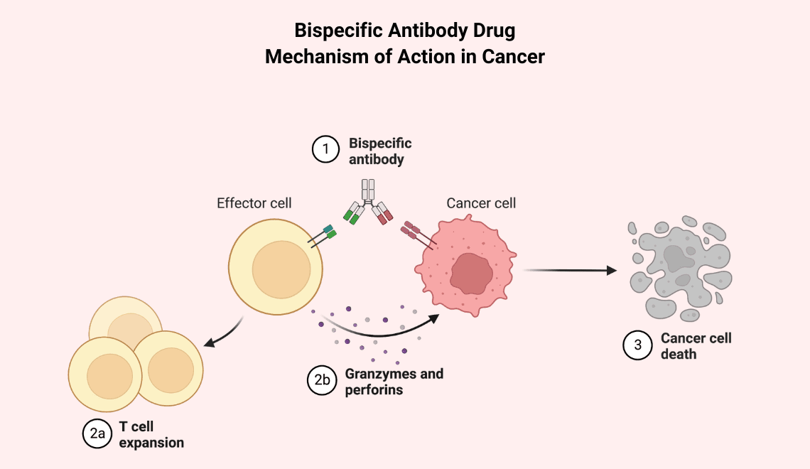 Bispecific antibodies, as the name suggests, are antibodies with two binding sites – directed against two different antigens, or in some cases, two different epitopes on the same antigen. While mAbs have become mainstays in various therapies, they have several limitations – not including failed treatment responses and the development of drug resistance. Tumors are multi-factorial, with multiple signaling pathways implicated in pathogenesis, that often doesn’t allow for single-drug treatments to be as powerful a therapeutic option.