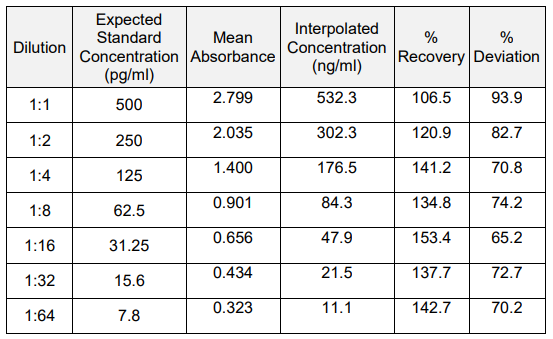 The PrecisionBind Human IL-10 ELISA kit is developed using an assay range of 7.8 – 500 pg/ml with the dilutional linearity accuracy to measure responses as per the application table above on patient Cmax values. The kit has also been validated upto 8 fold dilution and