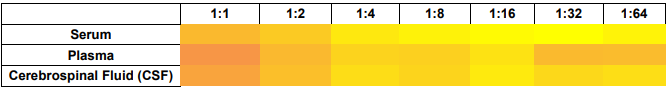 Sample Dilution factor – Human Serum, Human Plasma and Human CSF samples have been tested. Neat samples can be run directly.